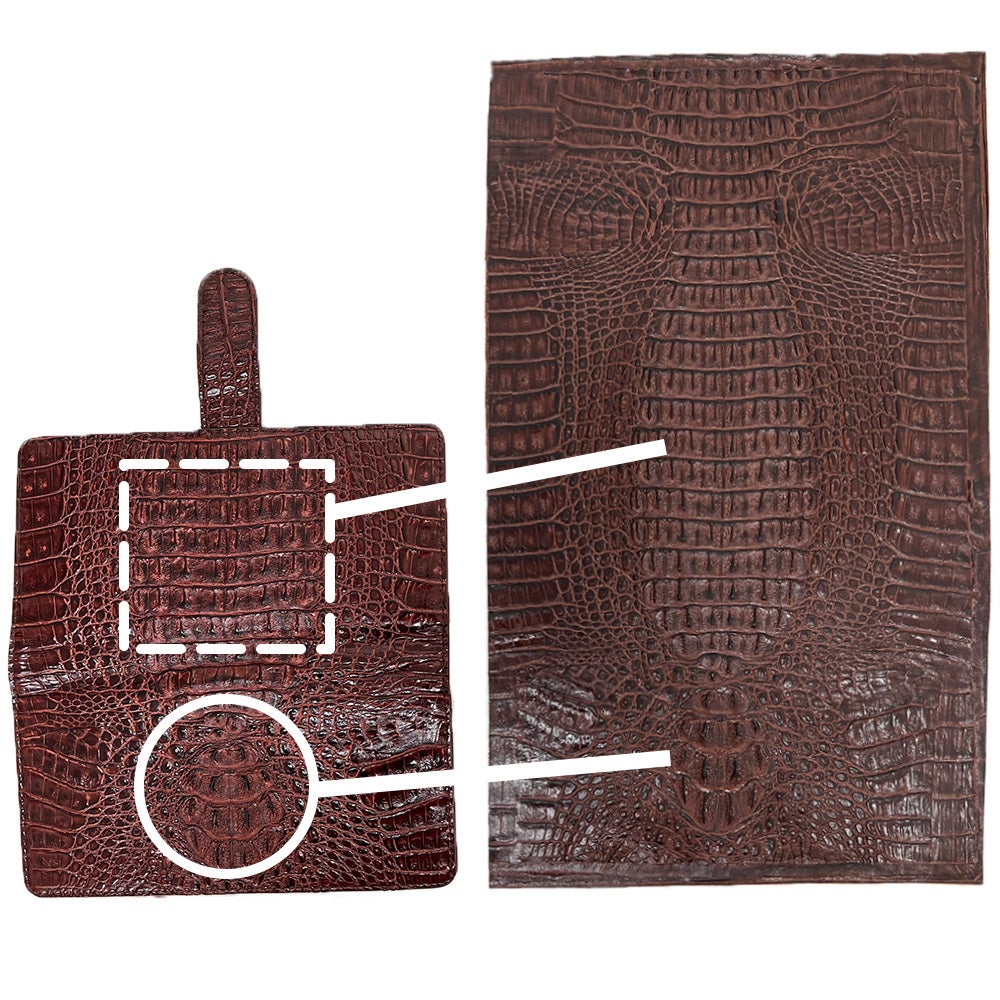 ワニ革の特長である頭の部分を品質良く、むしろ本物よりも本物らしいワニ革が再現できます。