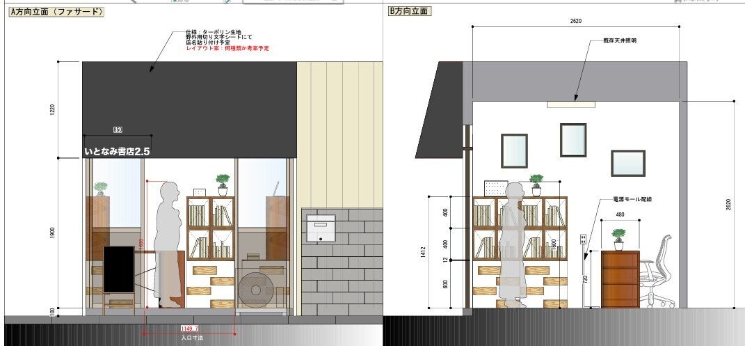 いとなみ書店2.5は、名前の通り2.5坪の小さなお店です。棚数は20棚、棚の大きさは縦33cm×横33cm×奥行30cmを予定しています。