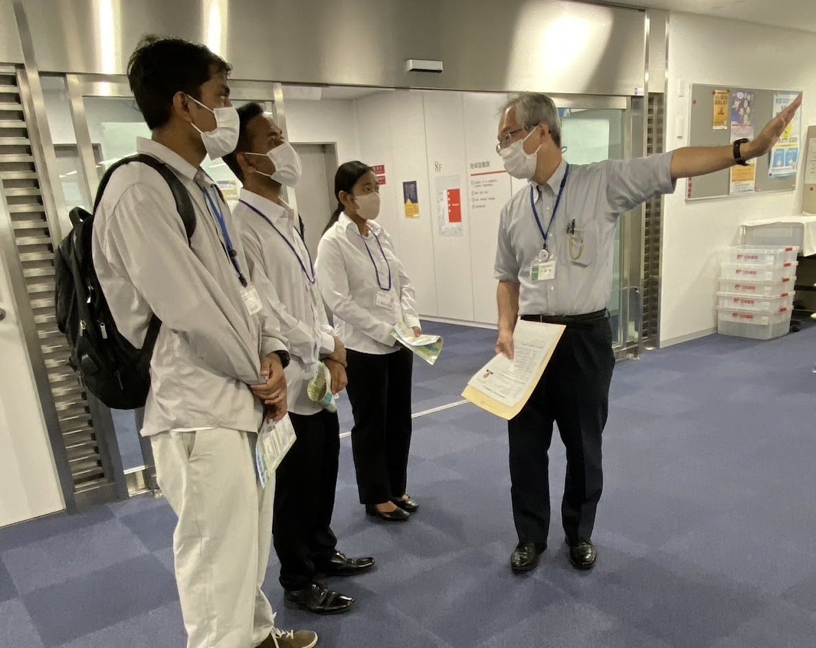 活動のはじめに担当の方に庁内の案内をしていただきました。案内は8階から1階まで1フロアごとにしていただき、留学生のみなさんは担当の方の話を一生懸命に聞いていました。