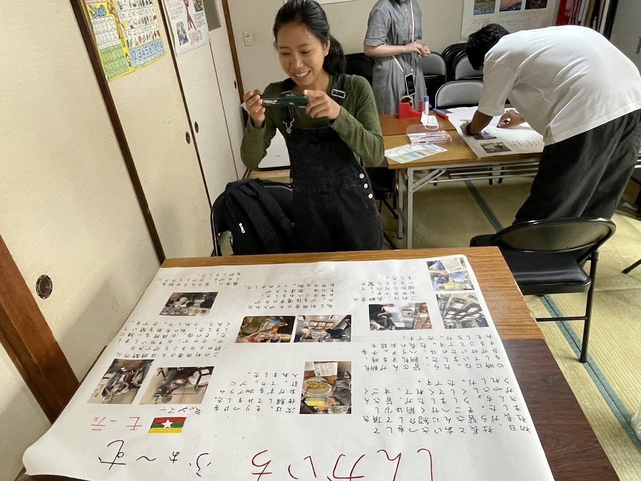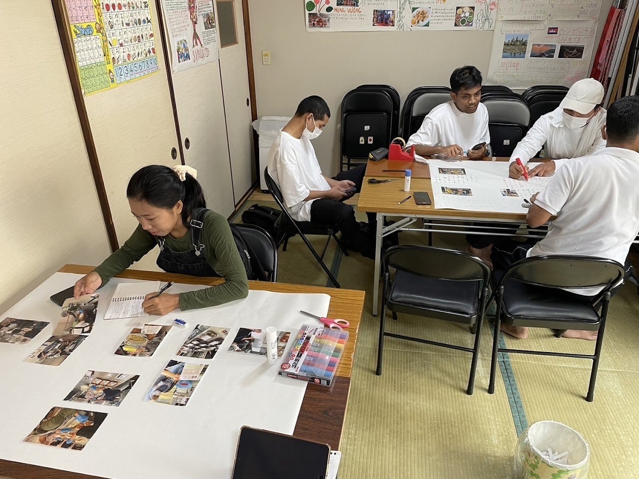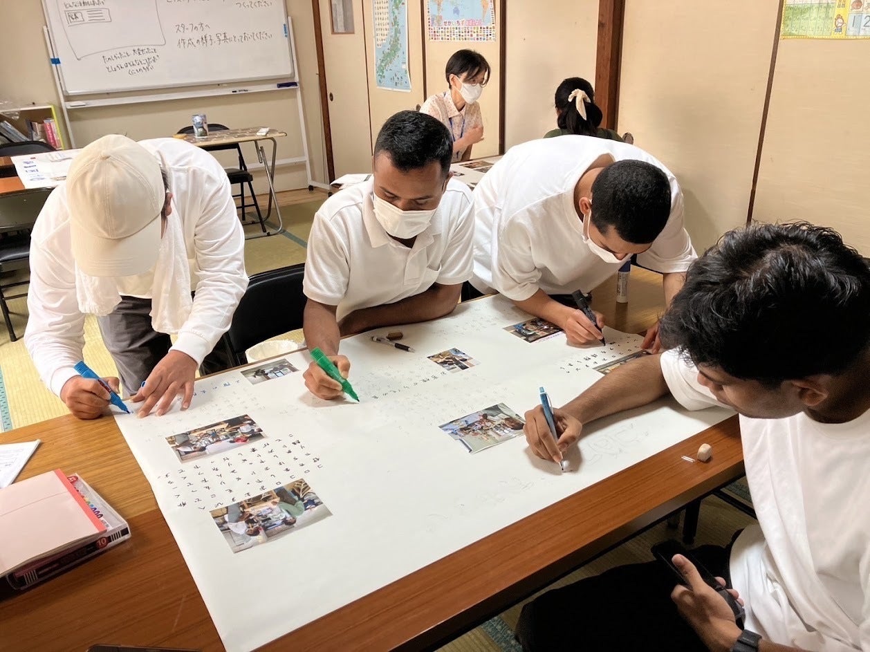 留学生は各活動を終えてから振り返り会の準備をしています。