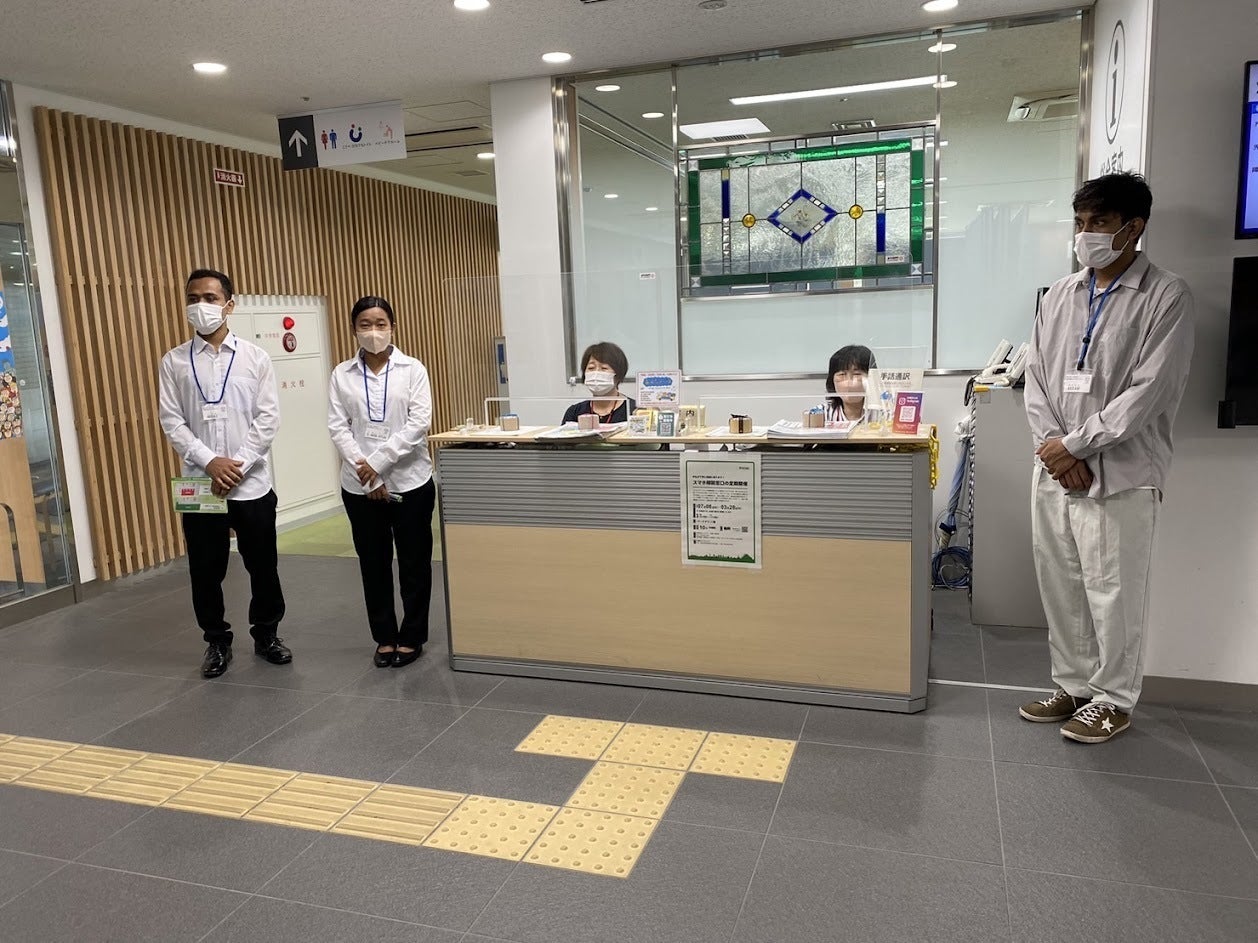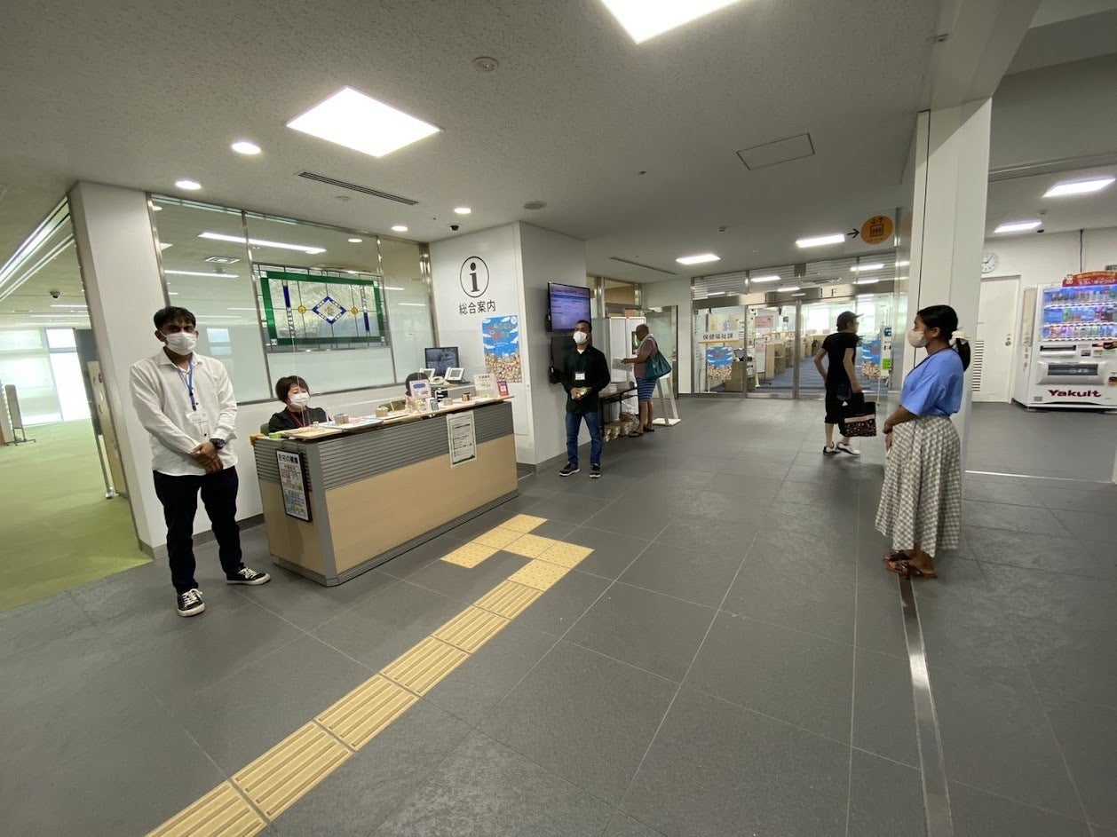 兵庫区役所の2回目の活動に行きました。今回は区役所でのトライやるウィークの活動2日目ということで、活動開始してすぐに総合受付での総合案内の仕事を始めました。前回と同じく、今回も留学生のみなさんは総合受付の方の力を借りながら丁寧に市民の方の案内をしていました。また、その中でも前回より市民の方にどこの課に行けばよいか聞かれて、総合受付の方の力を借りずに案内することができる機会が増え、留学生の方たちの成長を感じられました。また、市民の方に出産の手続きの担当課と場所を聞かれ、総合案内の方が答えた後、留学生が「出産とはどういう意味ですか」と質問し、難しい日本語の意味を学ぼうという積極的な姿が前回と同様に見られました。さらに、区役所は10時〜11時の間に区民の方の来庁が多く、9時〜10時の間はあまり区民の方が来られないこともあり、その時間に総合受付の方から「日本に来る前の日本のイメージを教えてください」と質問されました。留学生は「最初、日本は発展している国だから自分の出身の国よりもデジタル化も進んでいるのかと思っていたけど、実際に来てみると自分の出身の国よりも紙で手続きをすることが多く、思っていたよりデジタル化が進んでいなかった」と答えていました。総合受付の方に「ご自身の出身の国では高齢者の方は電子機器を使いこなせますか」と聞かれ、留学生が「いいえ」と答えると、「日本は高齢者の方が多く、高齢者は電子機器を使いこなすことが苦手なので、日本は電子化が遅れているのですよ」と説明され、とても納得した顔でうなずいていました。日本について学ぼうという積極的な姿が見られました。そしてこの日もまた、体の不自由な市民の方で、自分の行きたい担当課まで自力で歩いて行くことが困難な方に対して、留学生のみなさんが実際にその担当課までついていって案内するといった工夫をしていました。初日はあまり兵庫区役所の庁内の担当課や、どの階にどんな課があるかあまり覚えられず、総合案内の方のサポートがあり、何とか案内することができたという感じでしたが、今回は前回よりも自力でできることが増えました。次回もさらに区役所の職員の方のお役に立てるように留学生のみなさんに期待したいです。
