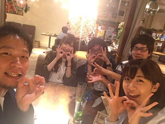 (右から科学実験酒場の川口さん、東大CASTの山下さん、理系女子シンガーソングライターの南さん、主催の横山と五十嵐)