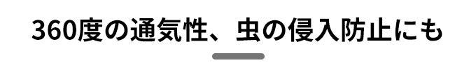 また、4面大型メッシュスクリーンによる360度周囲換気で、空気の流れがスムーズになり、暑い夏でも涼しく過ごすことができます。通気性も良いため、湿気や臭いも気になりません。