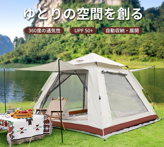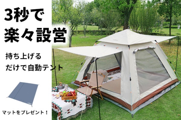 「Levoryeou」は、持ち上げると内部のスプリングやポールが作動して、テントが自動的に展開されます。組立不要な自動テントのため、手軽に設置することができ、初心者でも簡単に使いこなすことが可能です。