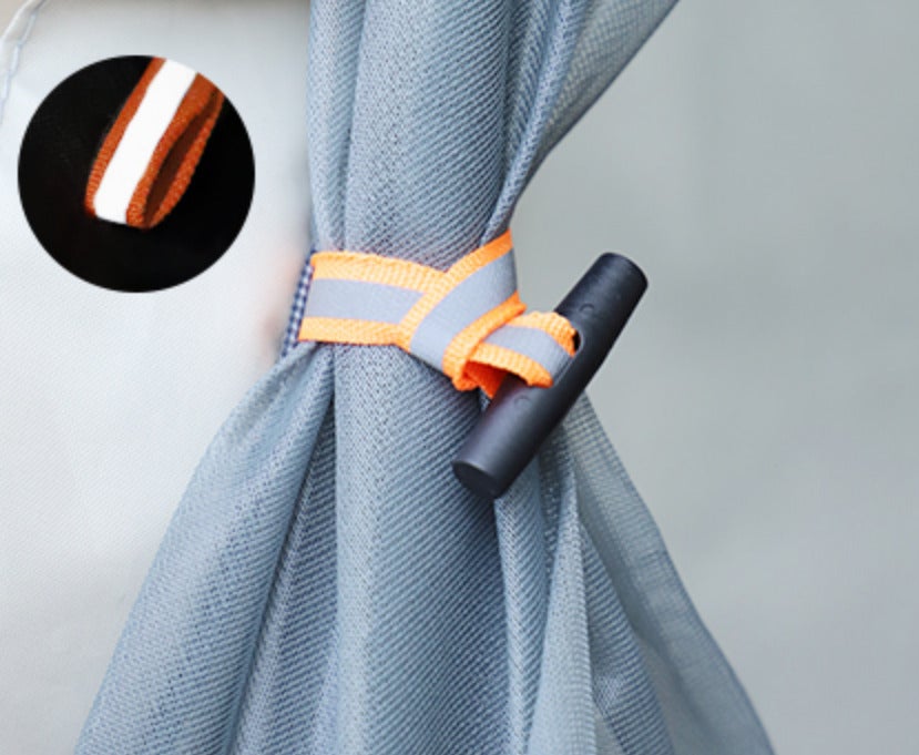 テントの内部にはバックルを搭載しており、巻き上げたカーテンを簡単に固定することができます。テント内部の風通しを確保しつつ、景観も損ねません。