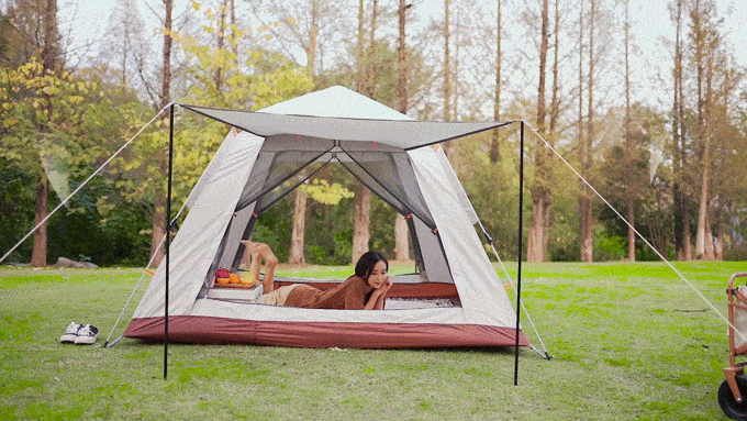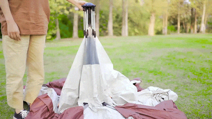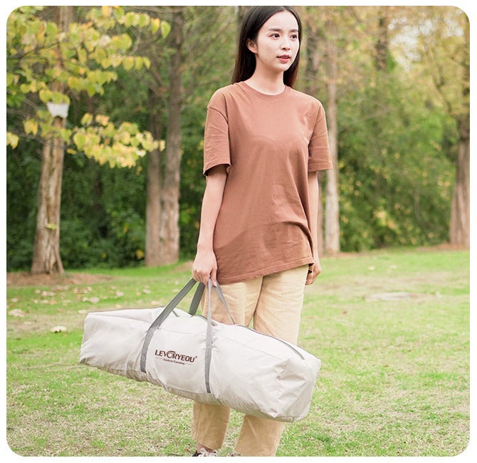 「Levoryeou」は、シンプルな構造に設計されており、テントを設置する際にはポールを持ち上げるだけで、初心者でも簡単に設置できるようになっています。
