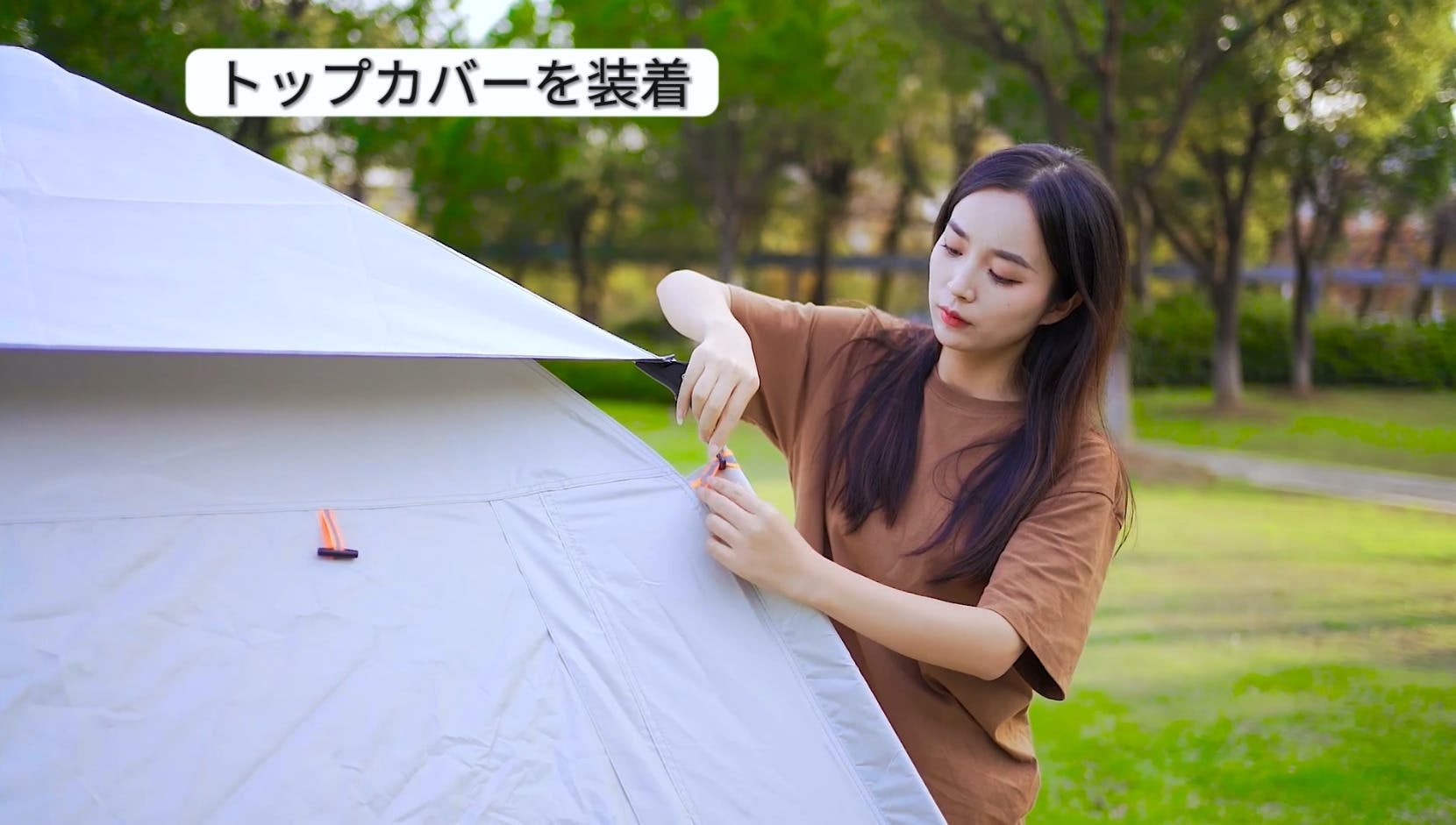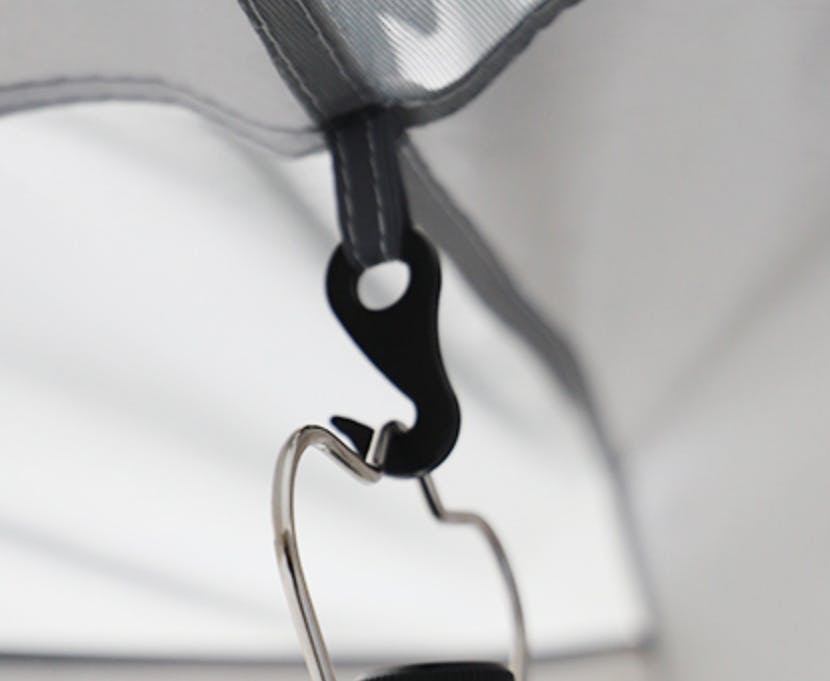 テントのトップカバーには4つのフックが装備されており、しっかりと取り付けることができます。