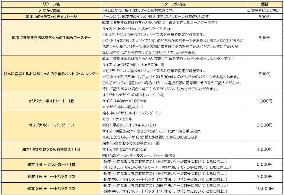 ◾5~6月 御礼メッセージ 、オリジナルポストカード・絵本等リターン発送(絵本以外:5月末。絵本:6月中。)