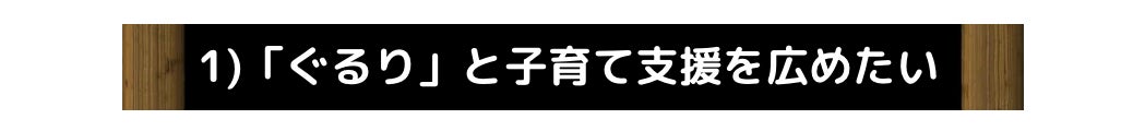 そんな訳で、私は今「ぐるり」と「子育て支援」に力を入れています。そしてもっとたくさんの人に喜んで欲しくて、たくさんのイベントを行うための仲間を増やしていくことが今、一番の課題でありイベントを成功させていくことが、今よりもっと生きやすい未来に繋がると信じています。