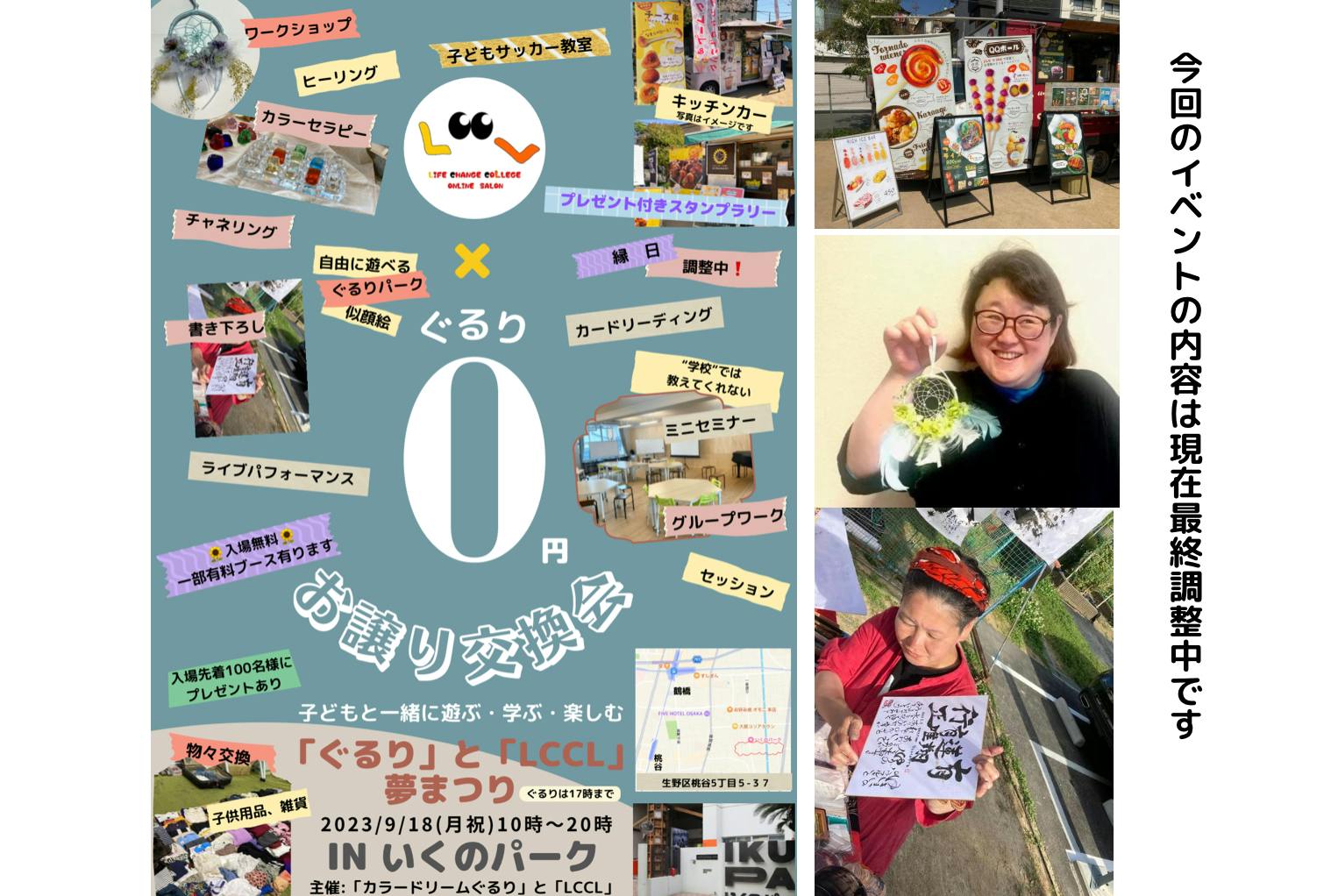一番は9月18日(月祝)に行う「ぐるり」と「LCCL 」夢まつり、のイベントを成功させたいです。子ども向けのイベントや企画も多くして、親子で一緒に一日中楽しんでいただけると思います。