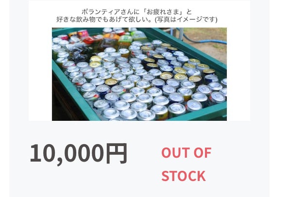 暑い中頑張るボランティアさんに冷たいドリンクと温かな気持ちを添えてお届けしたいと思います。