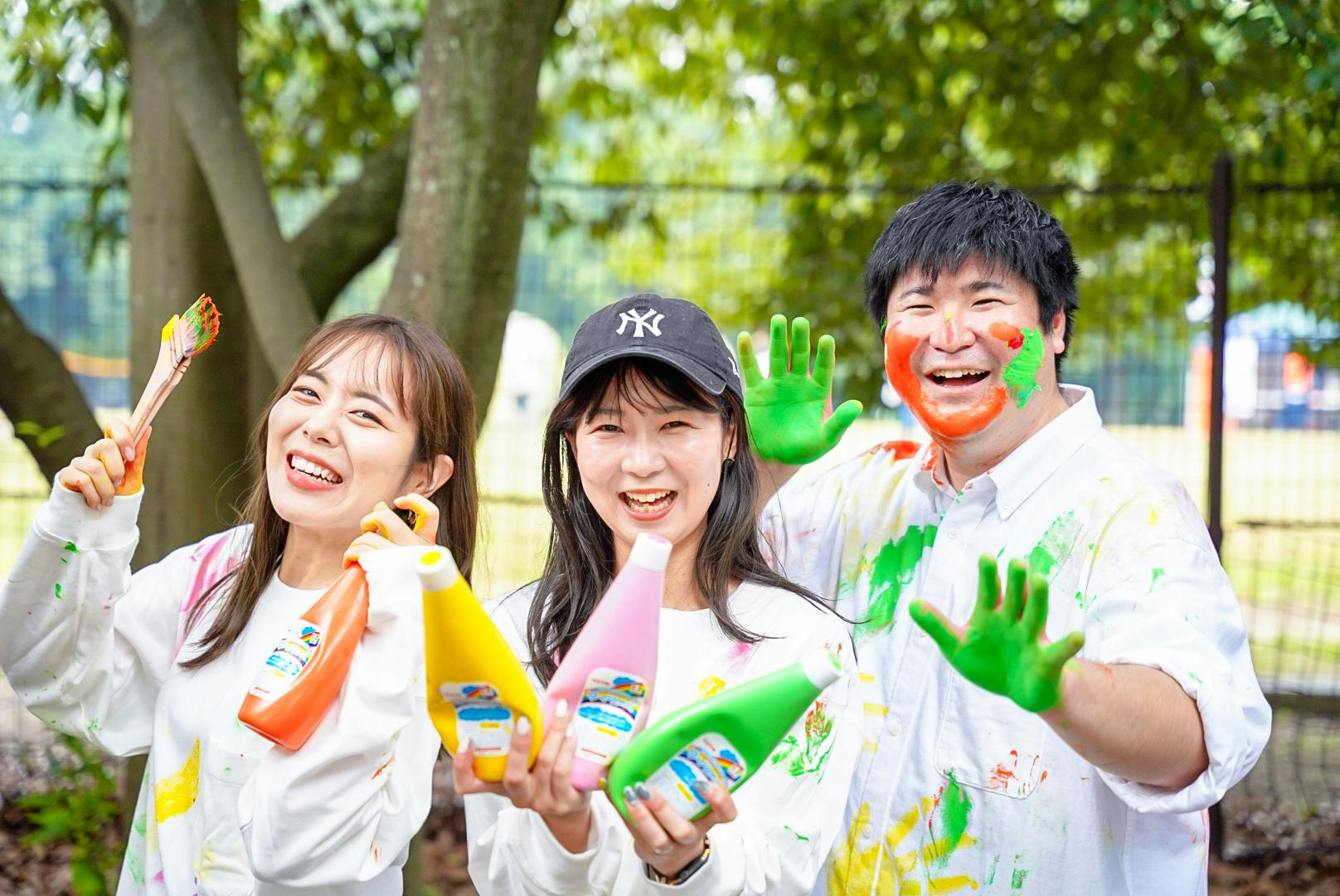 真っ白な衣装を着て絵具を用いて服や顔に自由にペイントを施し