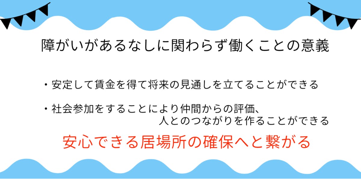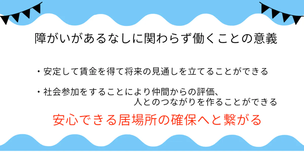 障がいのあるなしに関わらず、社会参加の意味でも働くことの意義は大きいと思います。