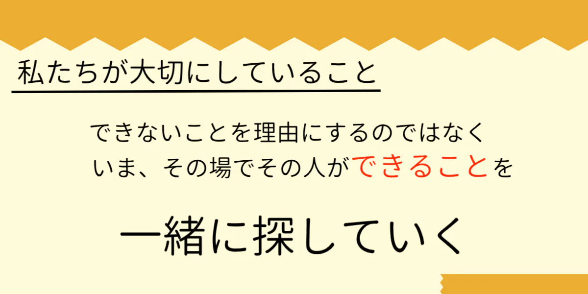 私たちが大切にしたいことは、お一人おひとりの、できないことを言い訳にせず