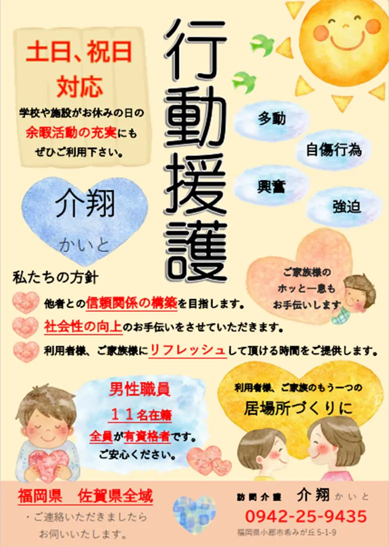 私たちは福岡県小郡市を拠点とし,障がい者の方の行動援護を行なっております介翔と申します。