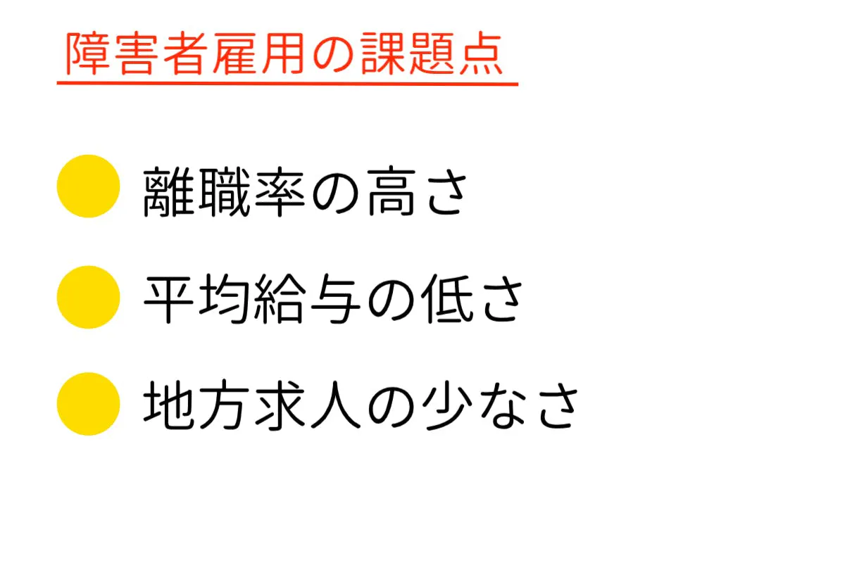 障がい者の方の「働く」課題点ではこのようなことがあげられます。