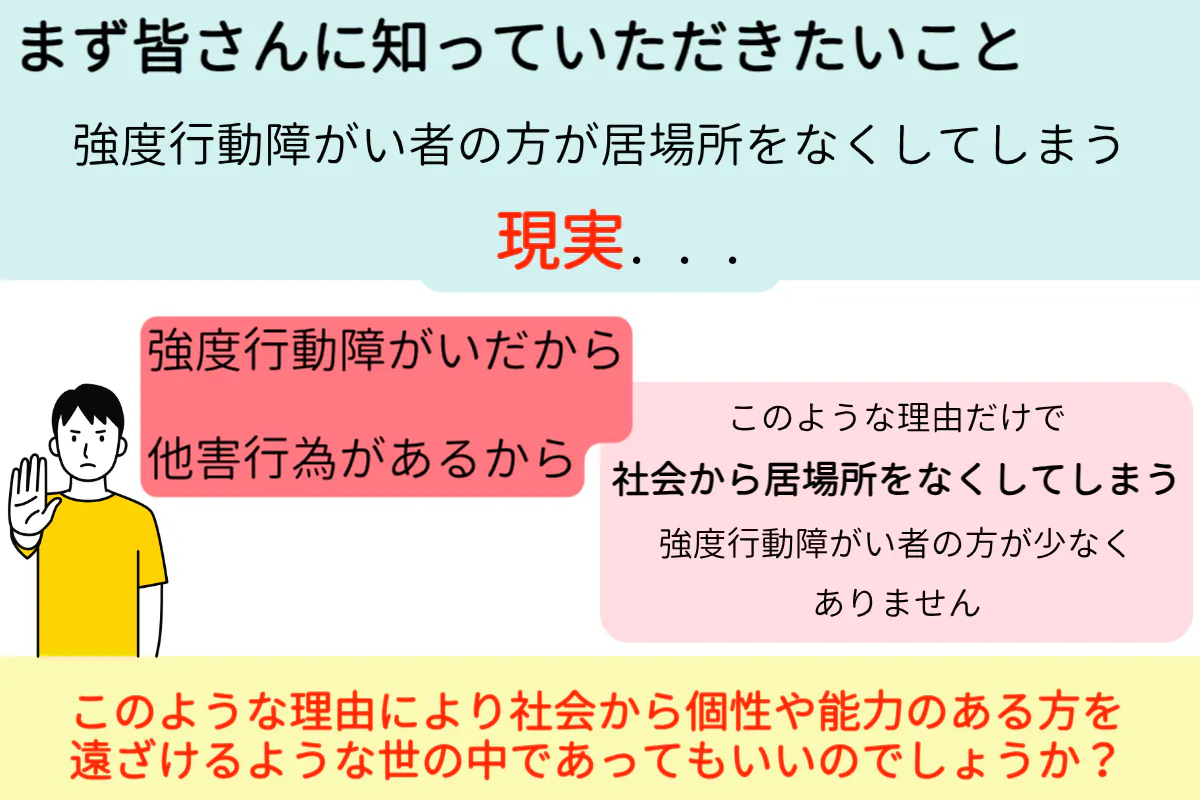 しかしながら、私たちが行動援護を通して関わらせていただく中で強度行動障がいということ、