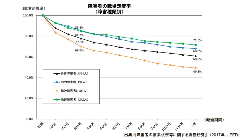 まず、離職率の高さです。入社から1年以内の知的障害者の離職率は約30%と