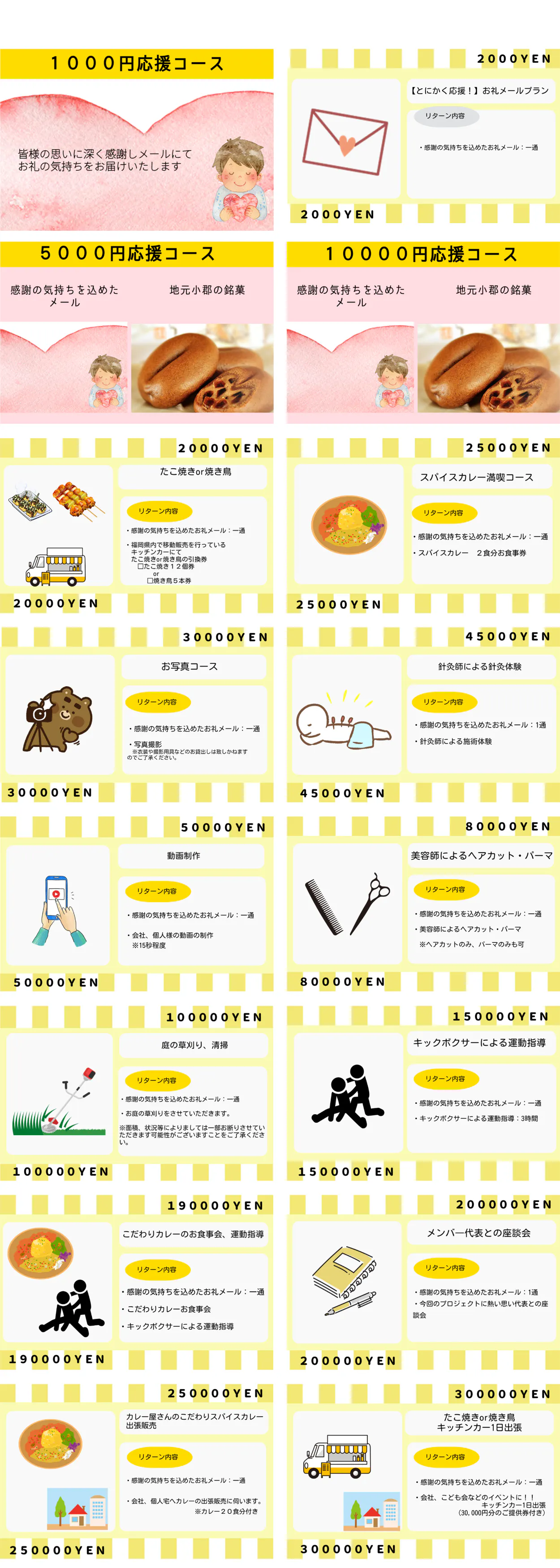メンバーの特技を生かした様々なリターンもどうぞお楽しみください。