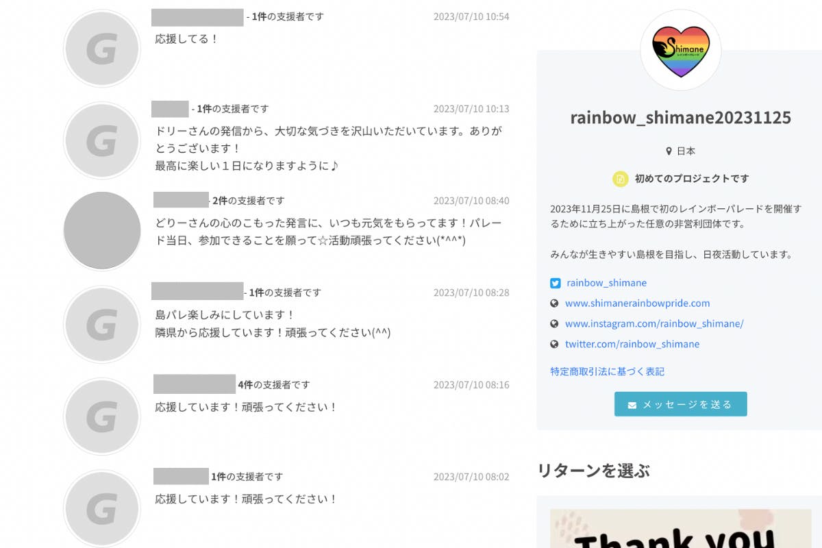 支援とともに寄せられるたくさんの温かいメッセージに、嬉しさが溢れています!