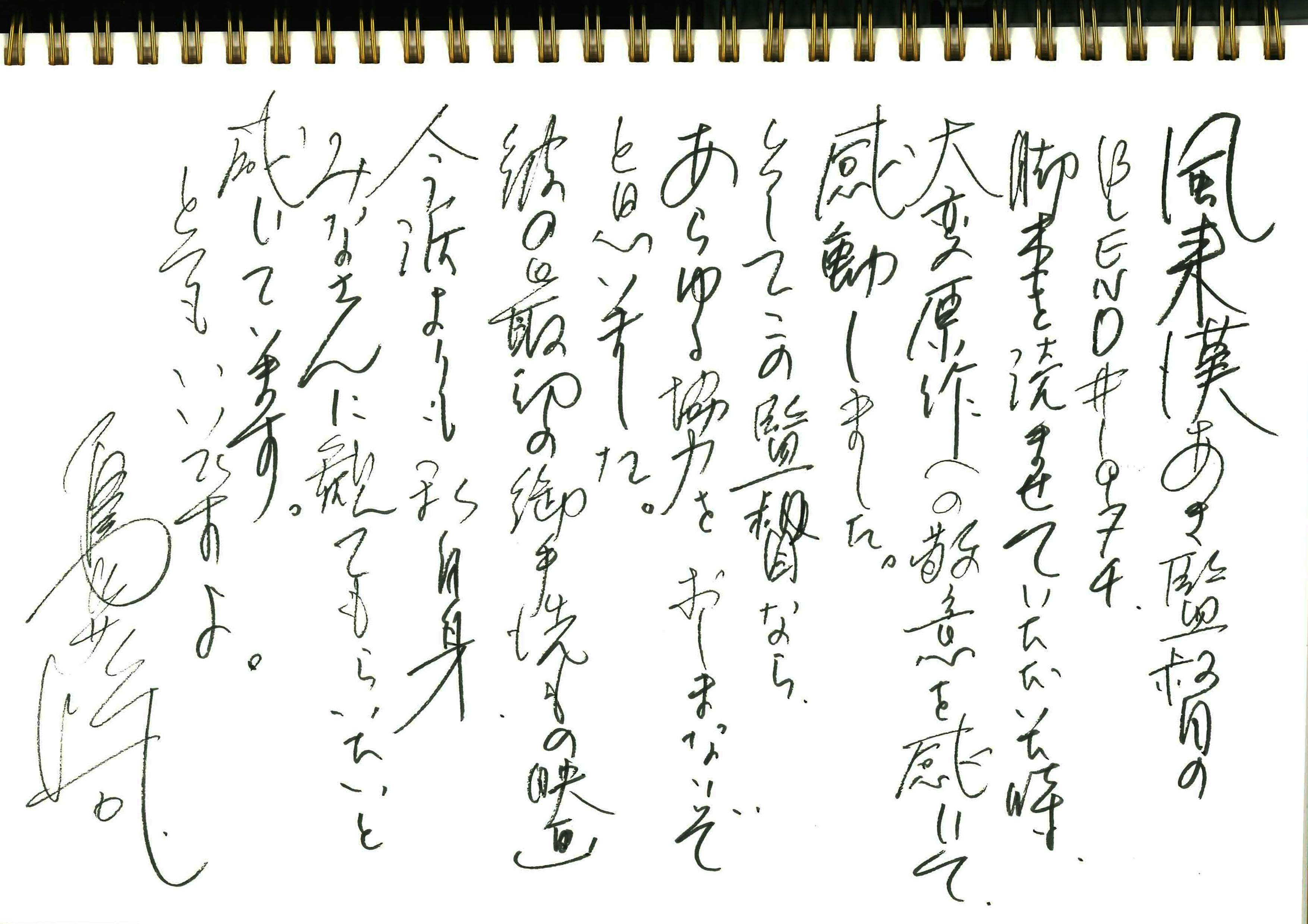 そして、今回最初からとてもお世話になっている方々の仲介により、ついに島田先生ご本人に脚本を読んでいただくことができ、「応援します」 という言葉を頂戴したのが2022年秋の頃でした。