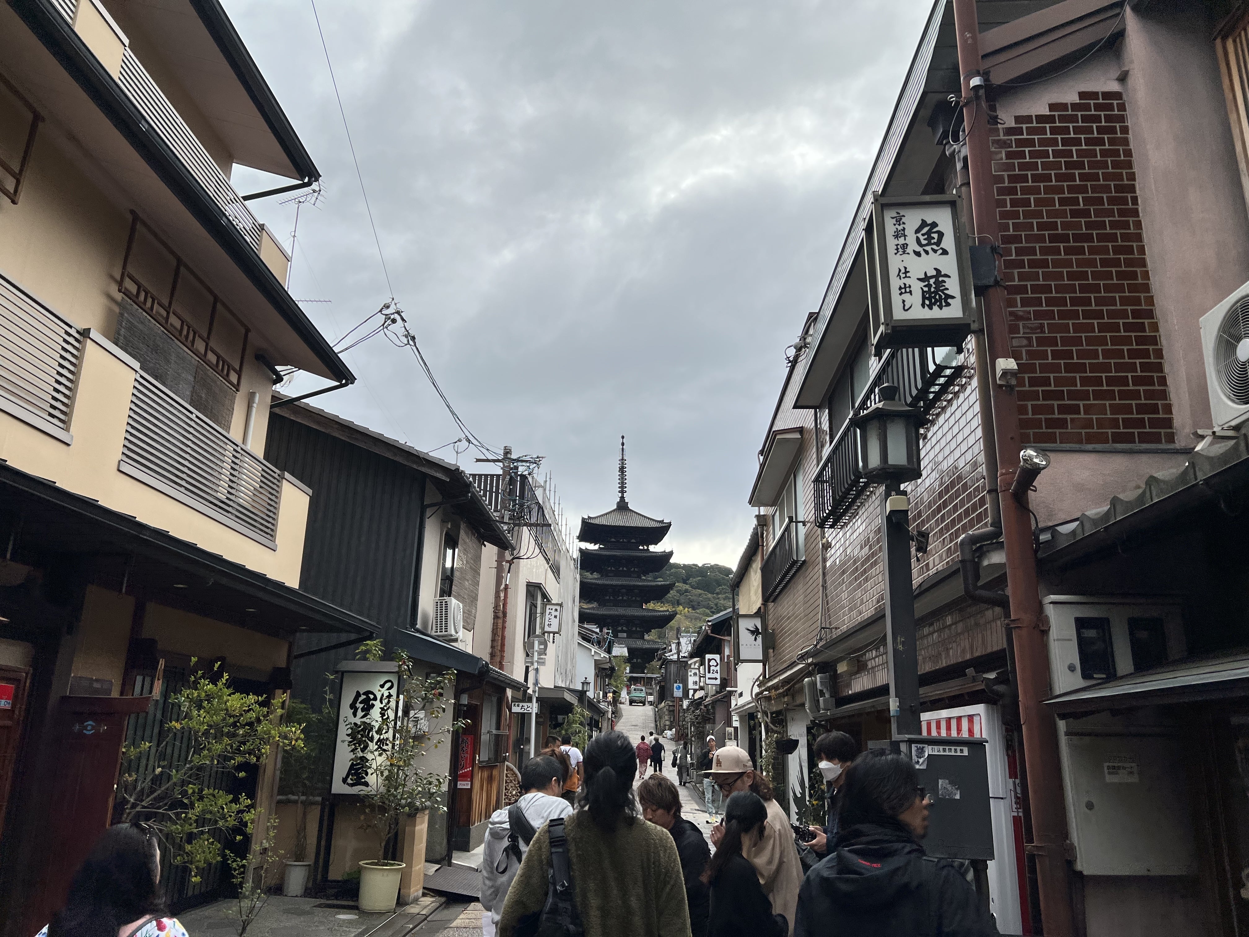 例年より早い桜の開花、3年振りになるインバウンドの増加で、京都市内は観光客で賑わっていました。しかも、天気予報は一週間前から雨100%。