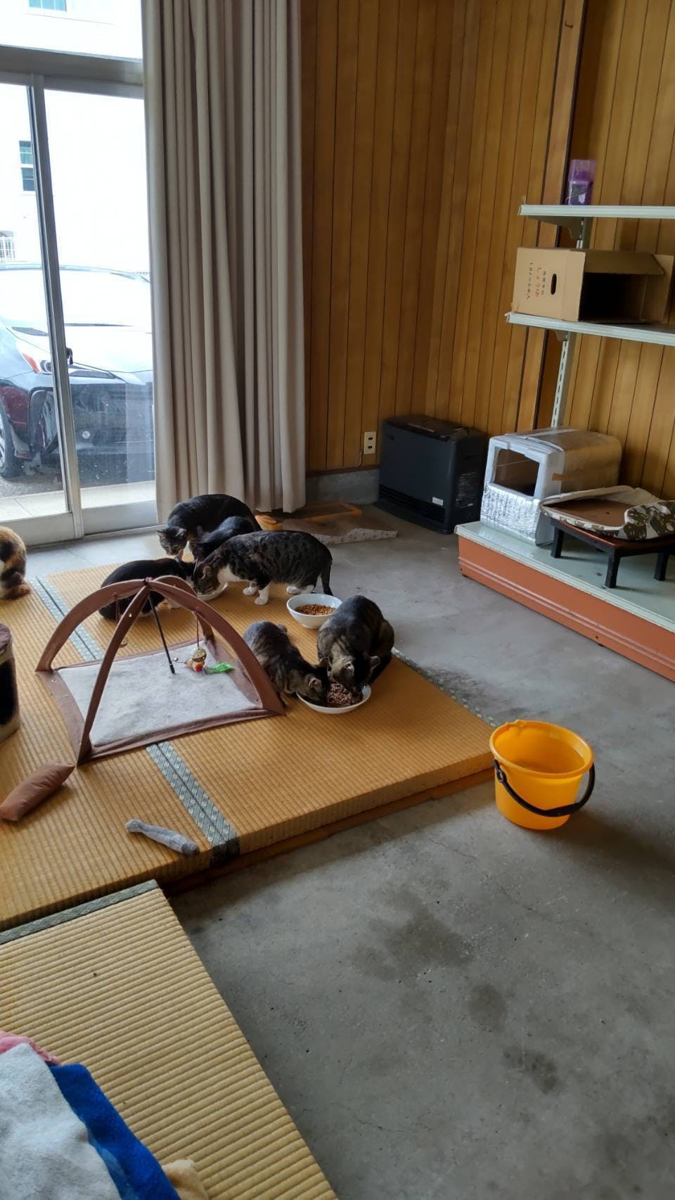 私共でも既存のシェルターで一度に16匹を保護する事は、元からいる猫たちとの棲み分けスペースの確保等の環境が整わない事から困難だったのですが、有志の方がシェルターにと貸して下さる物件があった為、その物件とボランティアの方の協力のもと、一時的に保護をする事にしました。