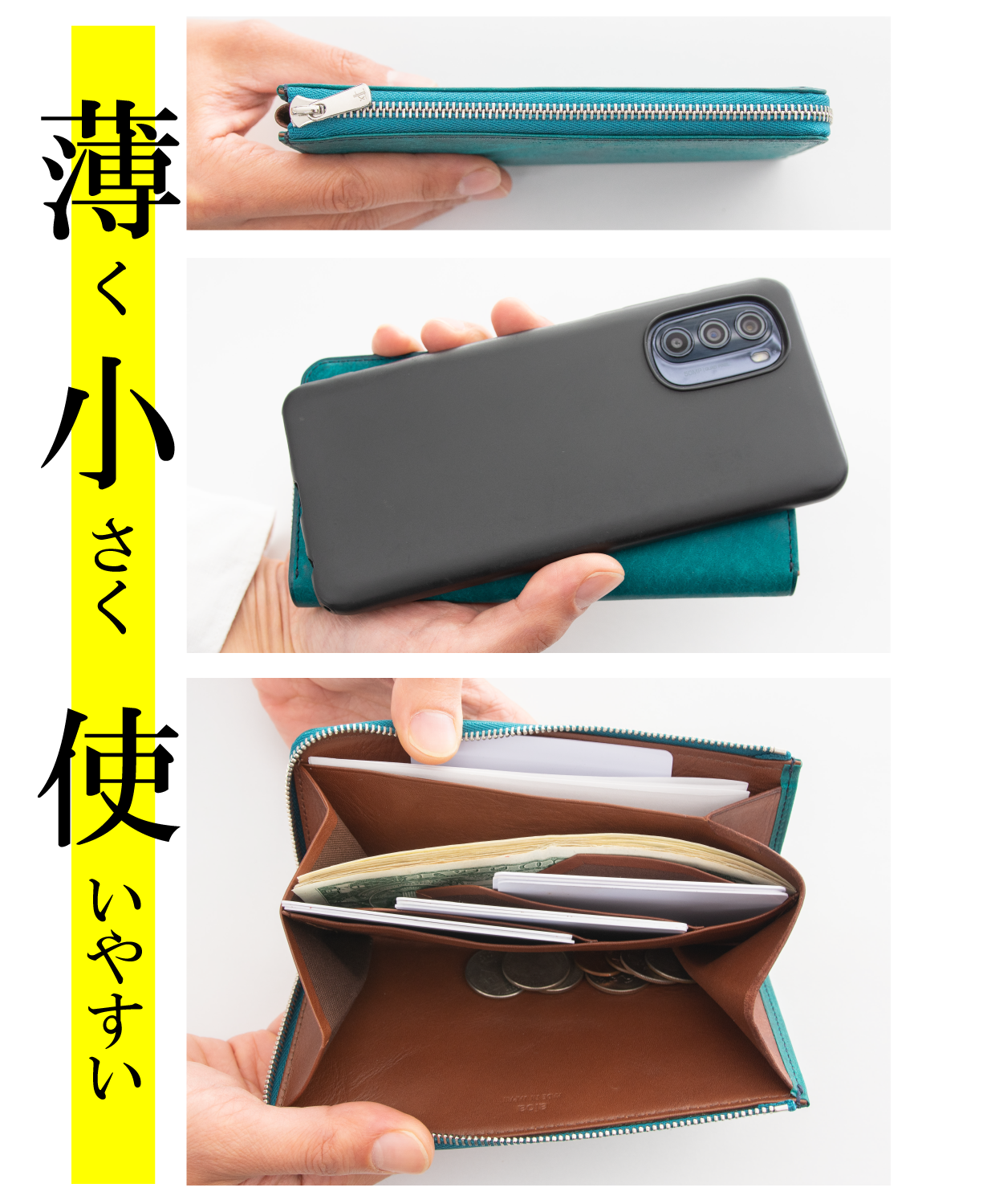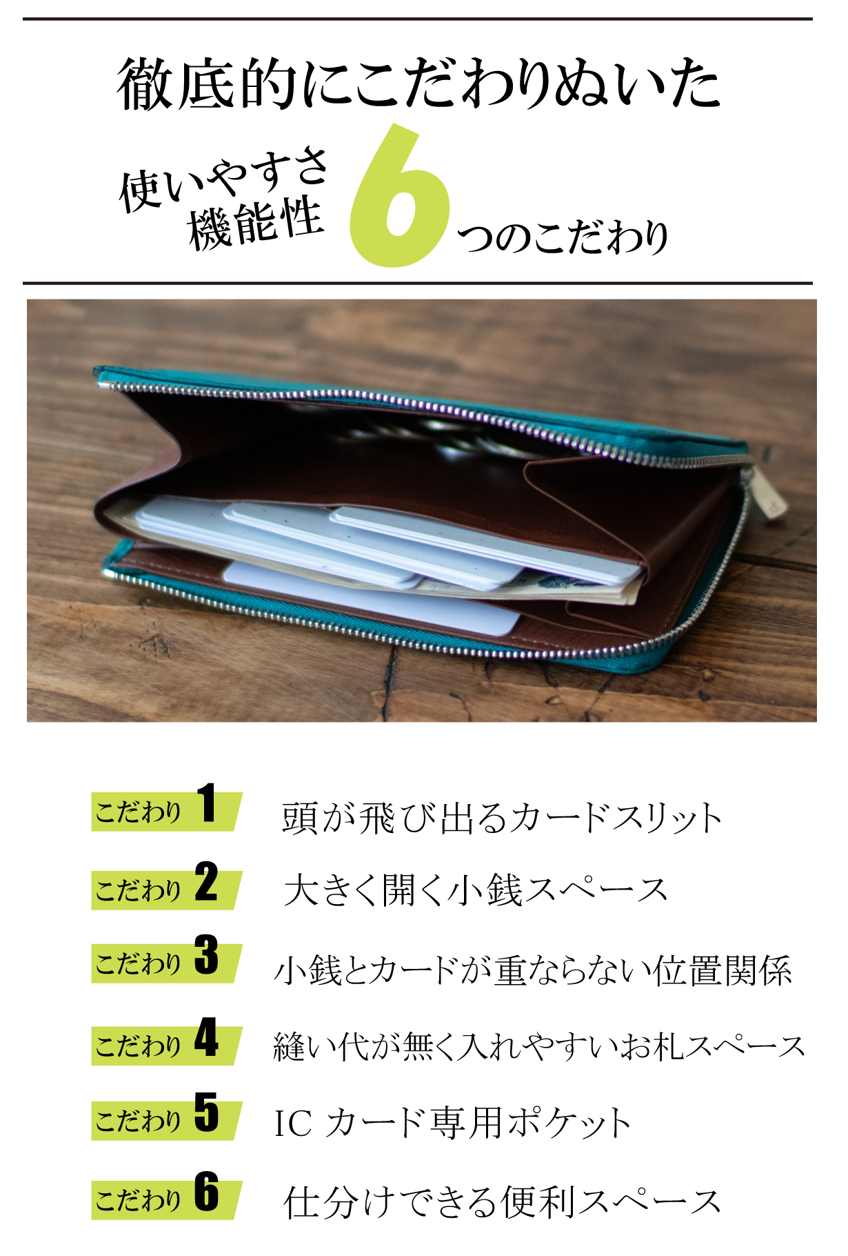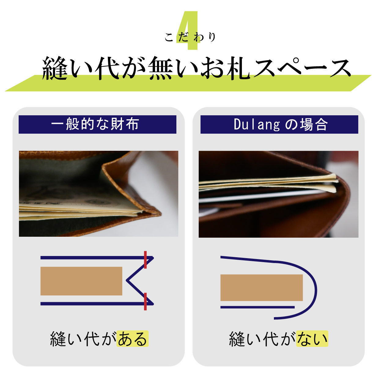 dulangでは風琴マチという技法を用いてお札の収納部分に縫い代がないように工夫をしています。
