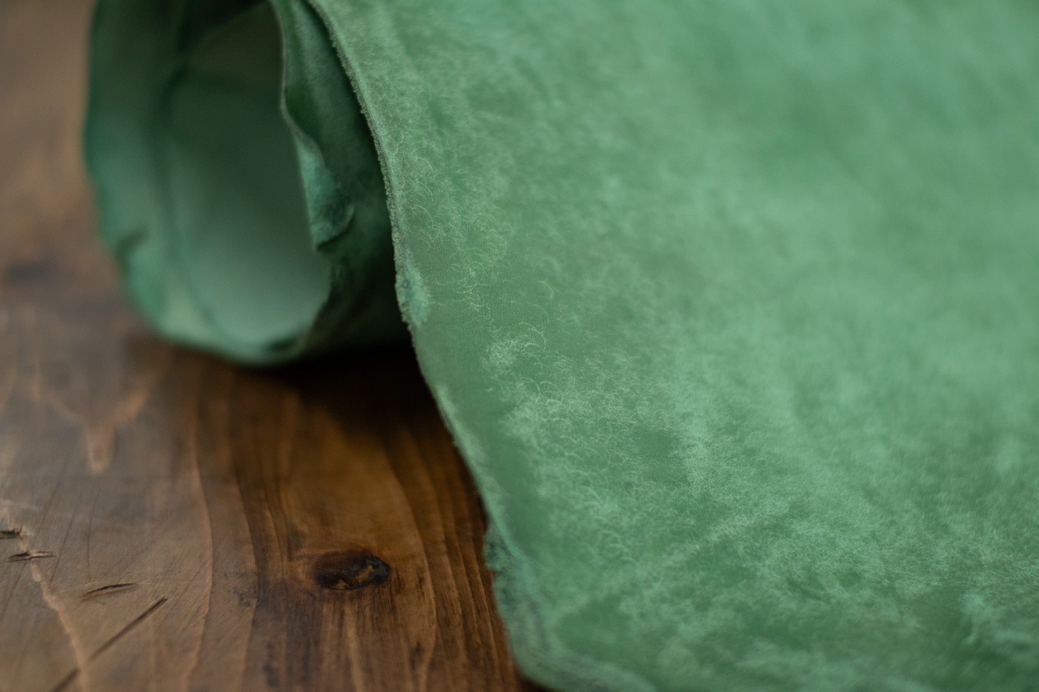 表面はスクラッチ加工によりざらついたタッチ感でマットな印象ですが、使い込むほどに通常の銀付き革以上の艶がでる、経年変化の振り幅が魅力の革です。