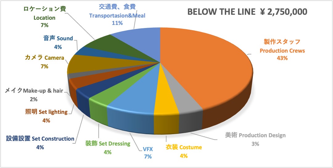 The breakdown is as follows. First of all, we would like to raise approximately 2.5 million yen (20K USD) for the filming portion of the project, which is 2/3 of the production fund.