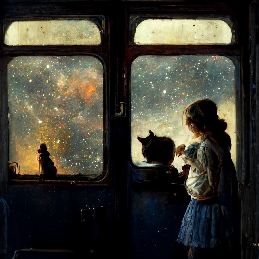 An astronomer’s daughter encounters a traumatised Physics student from Syria. They take a fantastical night locomotive train and deliver a letter and their respective keepsakes of her grandmother and his war buddy. On the way they retrieve those long forgotten priceless memories.
