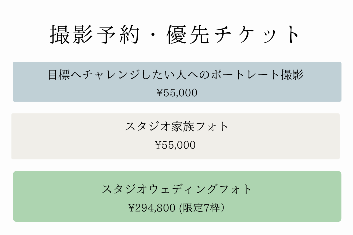スタジオオープンにあたり、締め切っていた撮影枠を、どどんと開放します。