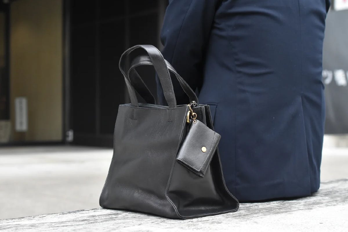 サブバッグにもこだわりたい方へ。長財布サイズの折り畳めるレザーミニトート。( 2023年4月 )