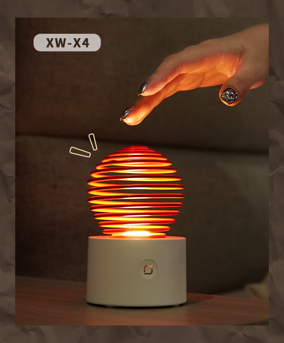 XW-X4は高感度の静電容量センサーとマイクロセンサーを採用しており、ばね型のランプシェードにそっと軽く振れるだけで明るさを調整できます。手だけでなく様々な材料に反応しますので、より便利にお使いいただけます。