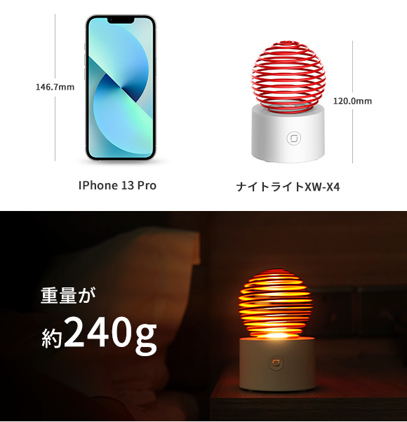 なかなか寝つけない夜、部屋の電気を点けると明るすぎて余計に目が冴えてしまいそう…そんな時、お好みの明るさに楽々調整できる「ナイトライトXW-X4」がおすすめです。温かな光で静かな夜を彩ります。