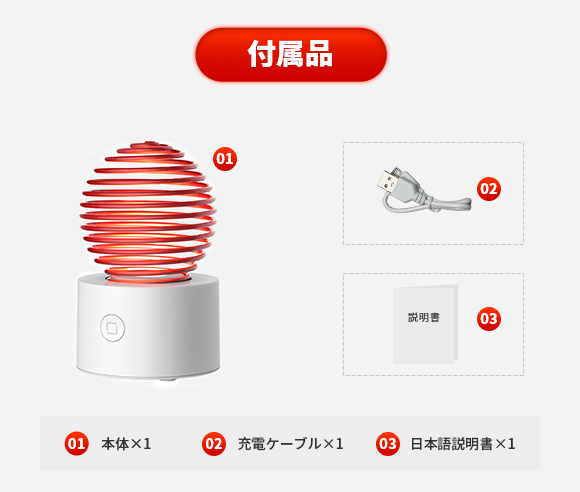 USB充電ケーブルが付属していますので、モバイルバッテリーやノートパソコン、またはアダプターを使ってコンセントから充電できます。屋外でも簡単に充電でき、バッテリー切れの心配がありません。