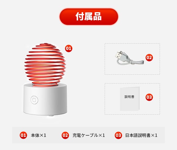USB充電ケーブルが付属していますので、モバイルバッテリーやノートパソコン、またはアダプターを使ってコンセントから充電できます。屋外でも簡単に充電でき、バッテリー切れの心配がありません。