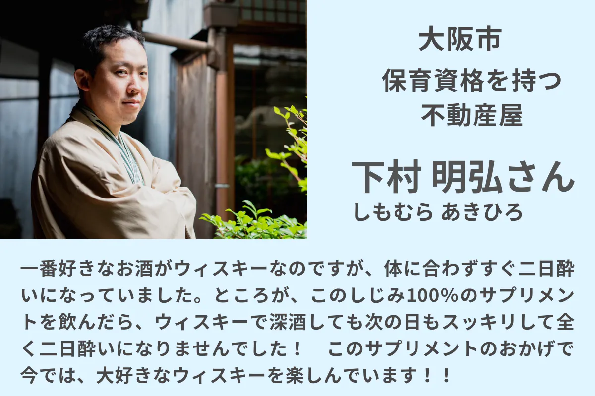 不純物のない、天然しじみの成分を100%抽出する製法でつくられたサプリメントは、初めてご利用いただく方から、このようなお声をいつもいただきます。