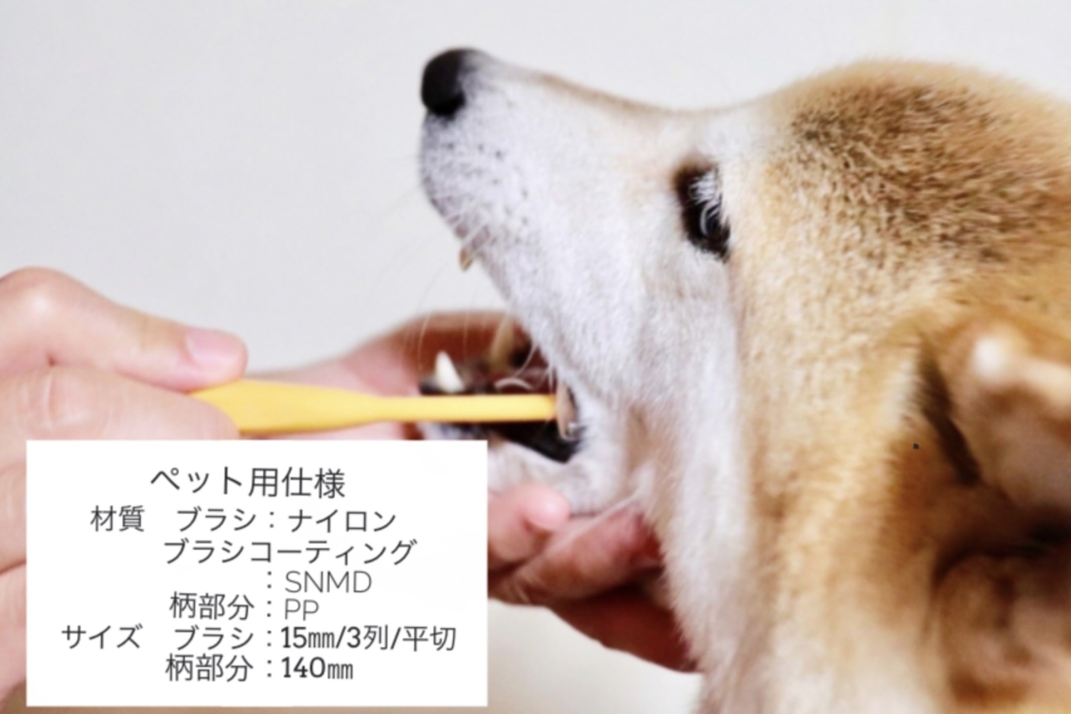 歯ブラシそのものの材質で、一般用と異なるのは柄の材質です。ペット用の柄は、一般用より柔らかいポリプロピレンを採用しています。コーティングに使用している《SNMD》ナノダイヤモンドは、濃度も一般用と全く同じです。ヘッドの大きさが一般用より少しコンパクトになっているので、試作品テスト時は「あえてペット用」をお使いになる方もいらっしゃいました。