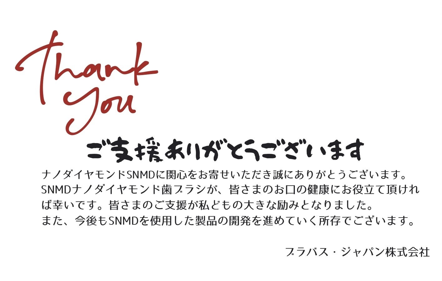 《SNMD》ナノダイヤモンド歯ブラシのクラウドファンディング・チャレンジ終了まで残すところ6日。皆さまからご支援いただき感謝申し上げます。既にお手元にリターン品の《SNMD》ナノダイヤモンド歯ブラシがお手元に届いている支援者様もいらっしゃると思います。折角なので、ダイヤモンドの分類についてご紹介できたらと思います。1.目的別①宝飾用ダイヤモンド 「ダイヤモンド」と聞いて先ず思い浮かべるのがジュエリー、アクセサリーに使われる「ダイヤモンド」だと思います。②工業用ダイヤモンド 「ダイヤモンド」の硬度を利用した、カッター・ドリル・研磨剤、また優れた熱伝導性を利用した調理器具、懐かしいところではレコード針などが挙げられます。また、ウェハなど精密性を求める物や、人工衛星の窓などから、電球のフィラメントのような身近なものにも使われています。医療用ナイフなどにも用いられてもいますが、工業用に分類しています。また、ナノダイヤモンドも工業用ダイヤモンドに分類されます。抗菌・抗酸化・抗カビ・抗ウイルスの性質を持つことから、今後も需要が拡大される素材として注目されています。2. 作られ方①天然ダイヤモンド 地球の地表下150㎞よりも深い極端な高圧と温度の場所で形成された結晶です。現代の技術では掘削することが不可能な程深い場所にあるため、地殻変動などで隆起した鉱山で採掘されている、自然界で最も硬い物質です。採掘された約8割のダイヤモンドが工業用として使われています。②合成ダイヤモンド 天然ダイヤモンドの形成方法が解明されると、人工的にダイヤモンドを合成する技術が研究され始めました。4種類の代表的な合成方法があります。近年では宝飾用の合成ダイヤモンドを「ラボグロウンダイヤモンド」と呼び、天然のダイヤモンドと同じような形成条件を研究所で再現して生み出しています。ラボグロウンダイヤモンドと同じ工法で作った合成ダイヤであっても工業用に使用しているものもあります。「ナノダイヤモンド」は、短時間で高圧と高熱を起こすのに爆薬を使います。いかがですか?宝飾用のダイヤモンドも素敵ですが、機能性ダイヤモンド(工業用やナノダイヤモンド)も身近に感じていただけましたか?これからは《SNMD》ナノダイヤモンド歯ブラシが皆さまのお口の健康を守るアイテムとして選んでいただけたら幸いです。また、これから続々と《SNMD》を使用した製品を開発していく所存です。今後ともご支援のほど、よろしくお願い致します。