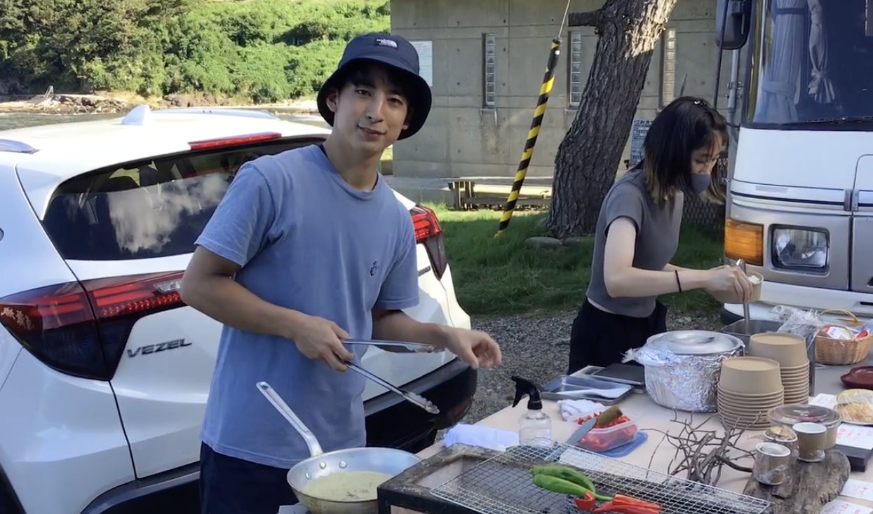珠洲市木の浦の野外イベントでカレーを提供中の日野貴明さん