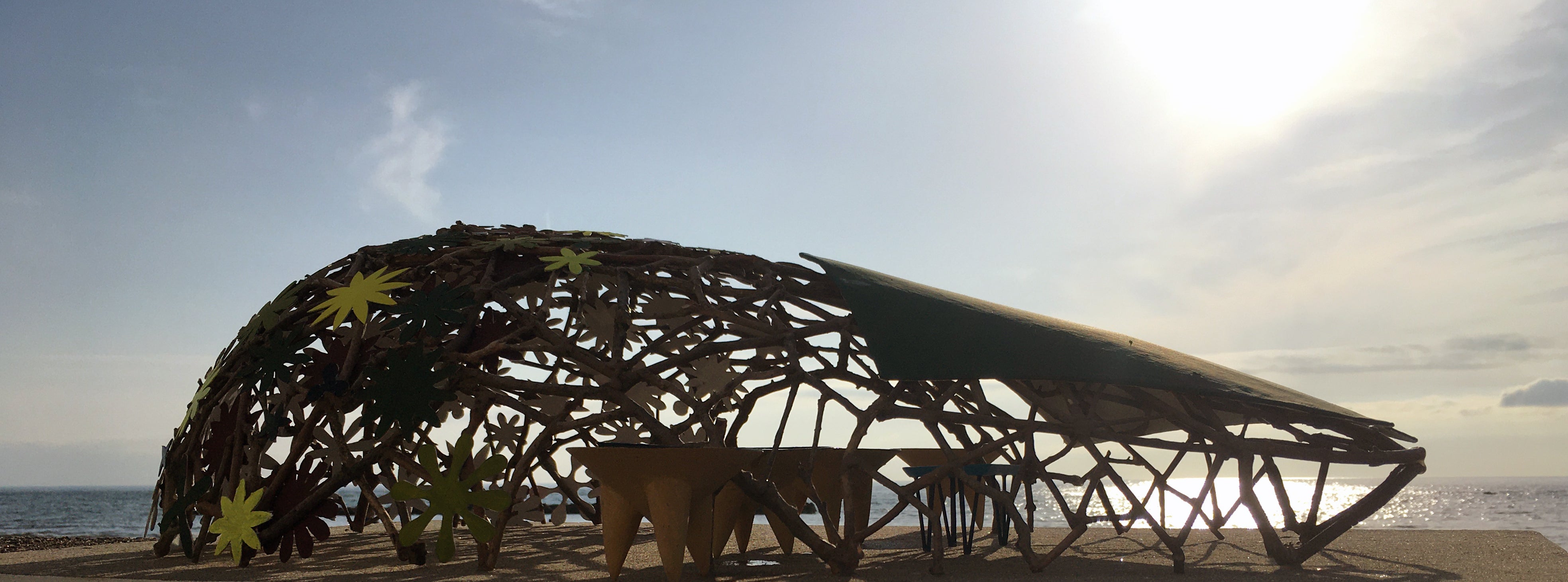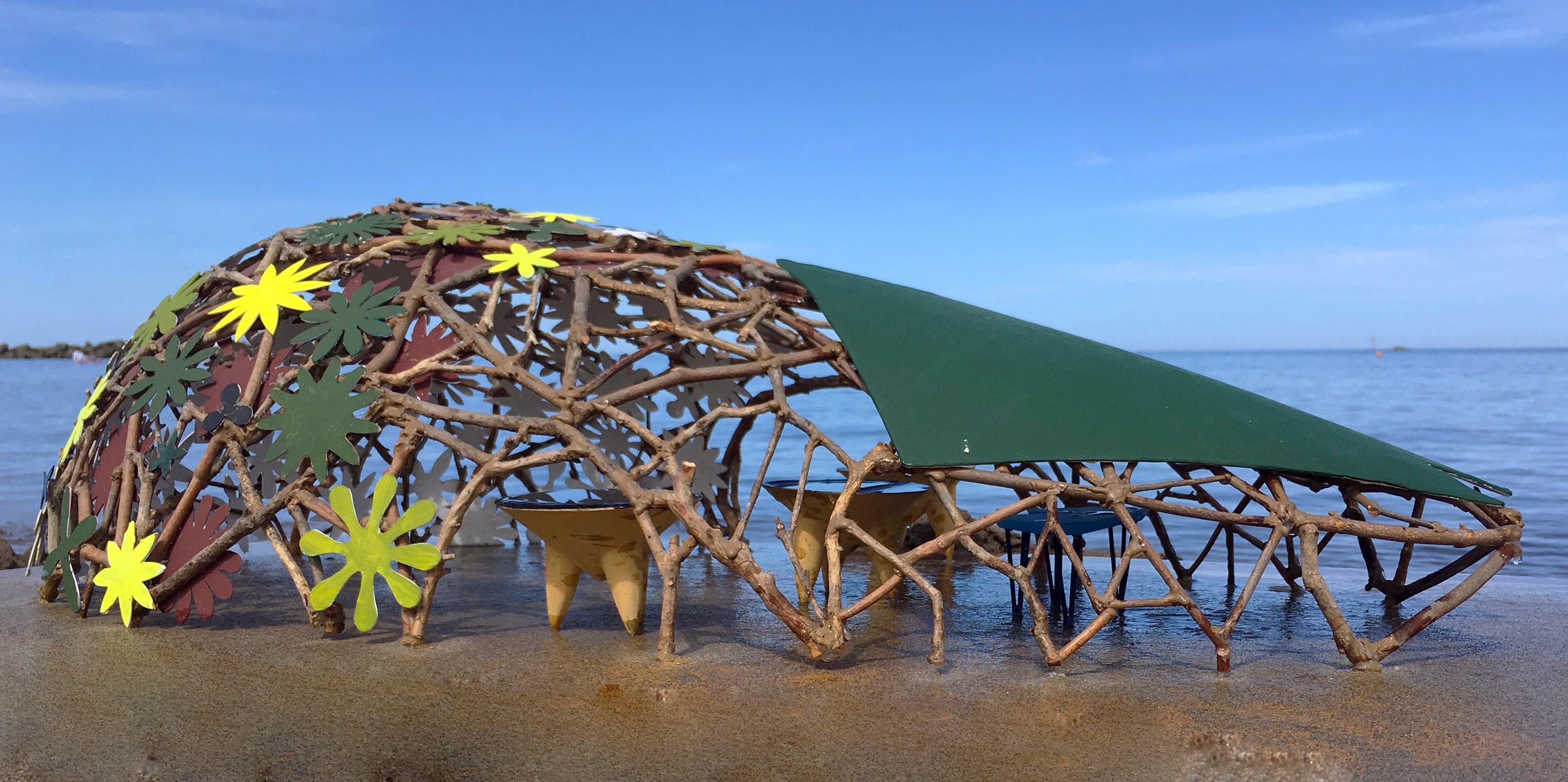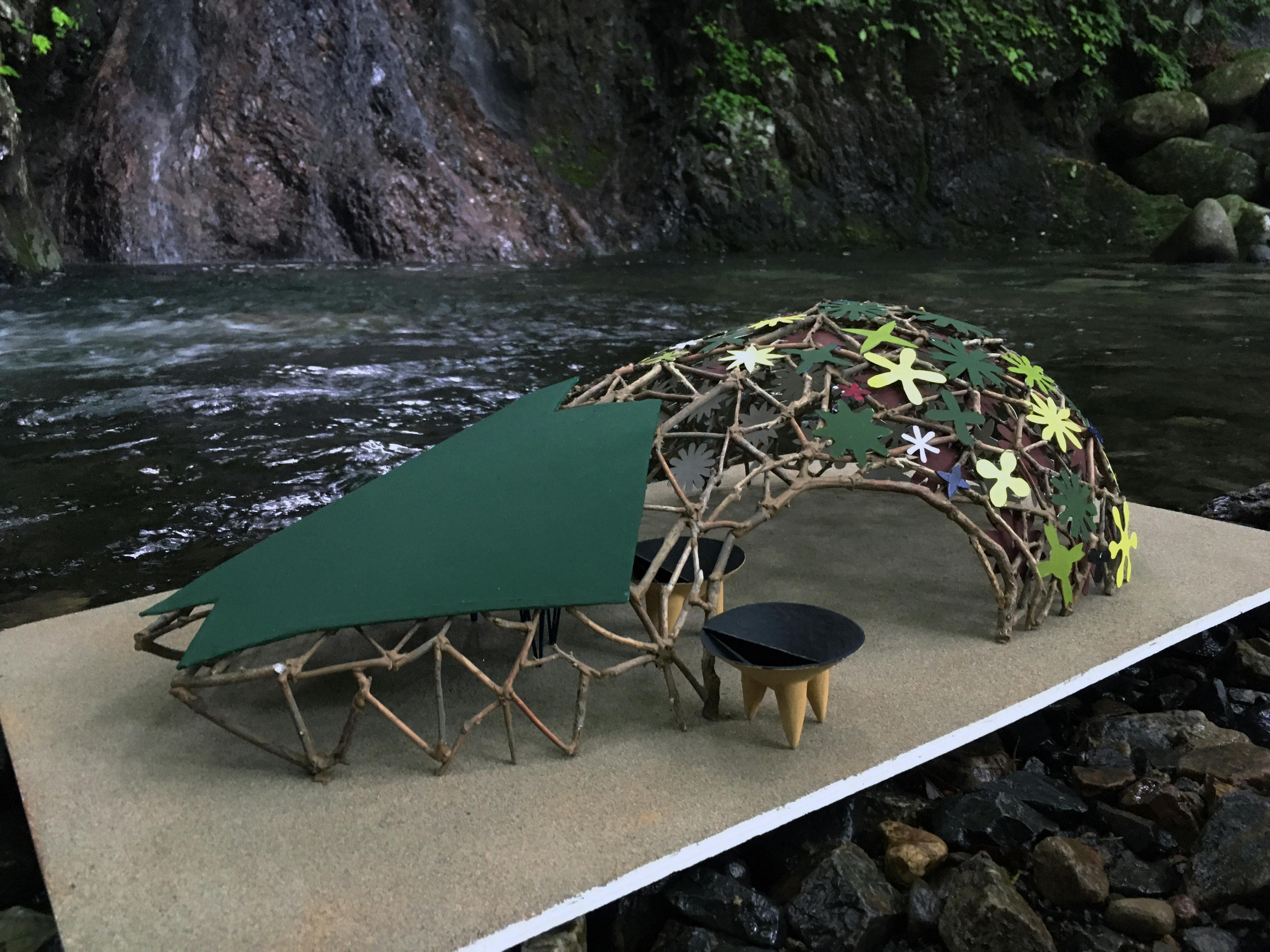 ハットの中は木陰のように涼しく、また、母体の中にいるような安心感があります。