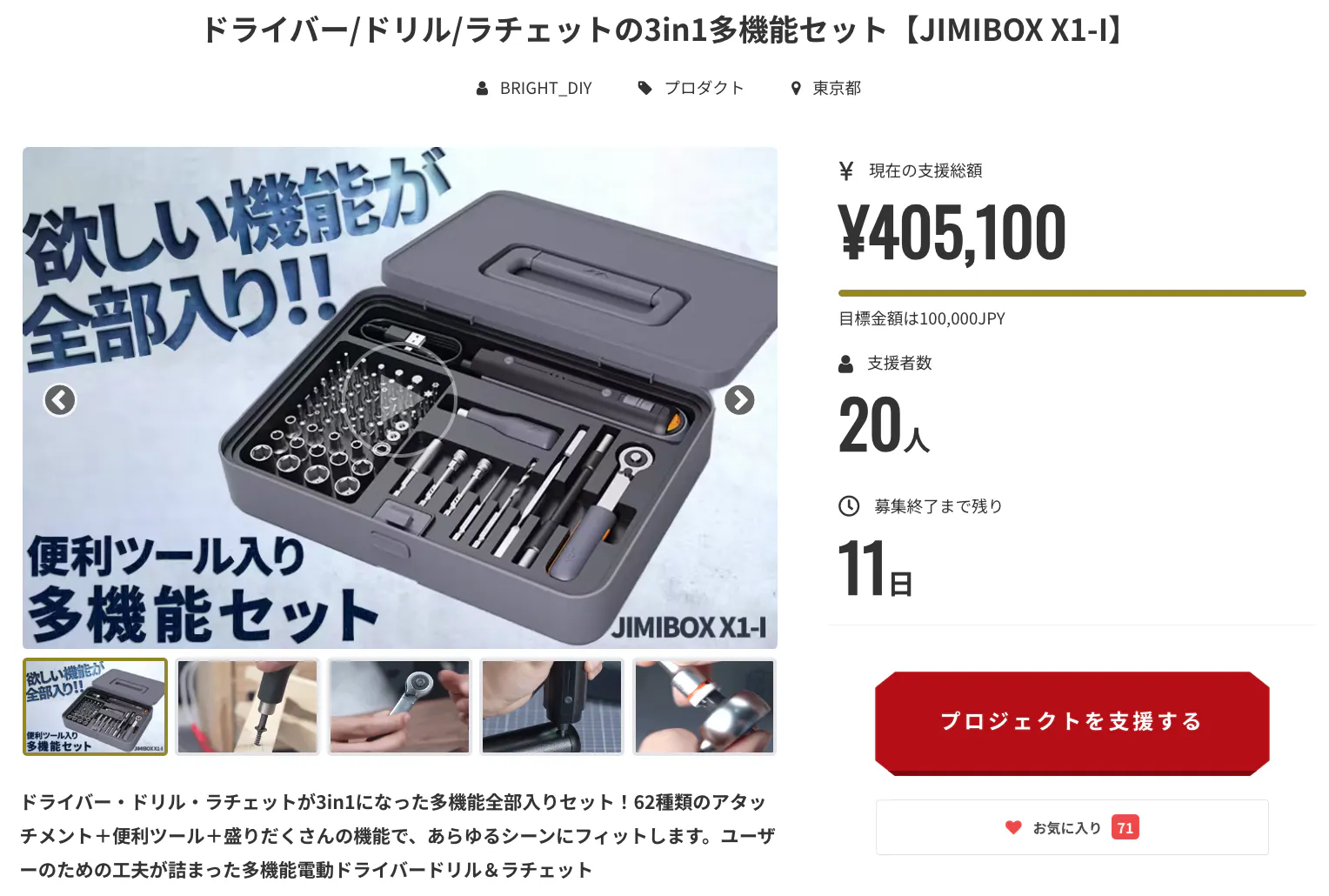 この度は「ドライバー/ドリル/ラチェットの3in1多機能セット【JIMIBOX X1-I】」に支援購入頂き、ありがとうございます!