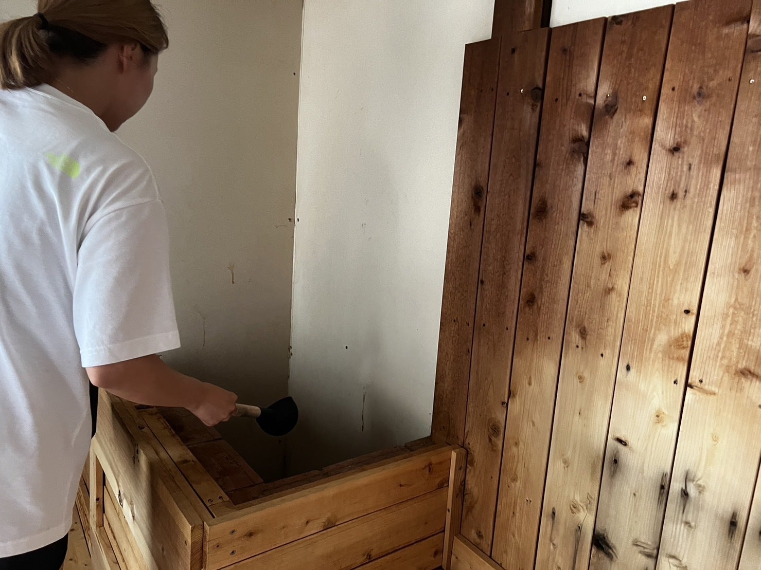 ロウリュに対応するため、サウナストーブを改良。また、サウナ室内の木材をヒノキに一新しました。