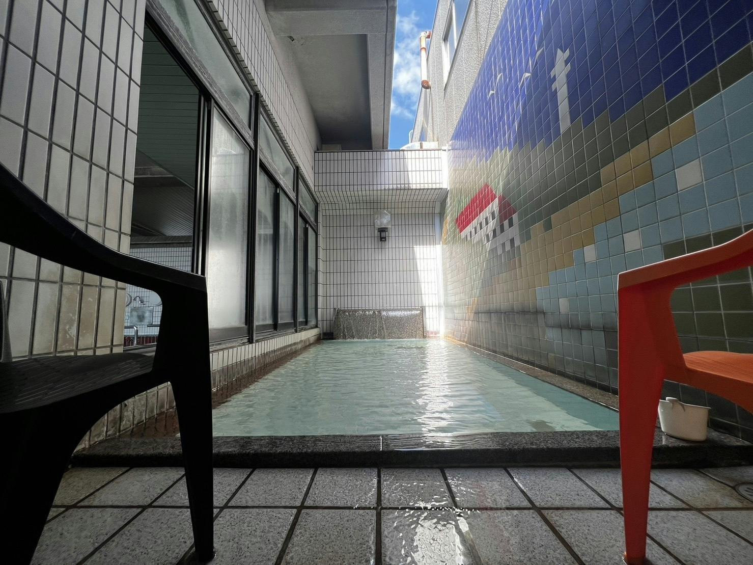 浴室内にある水風呂(16℃)とは別にもうひとつ。れもん湯には露天風呂ではなく露店プールが設置されています。