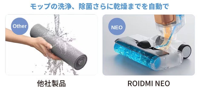 ROIDMI NEOは、こびりついてしまったあらゆる汚れを少ない労力で落とすことに注力しています。
