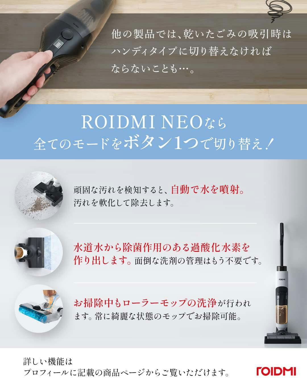 ROIDMI NEO はあらゆるタイプのゴミを強力に除去します。