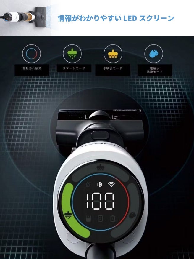 BluetoothとWi-Fi経由で「ROIDMI NEO」をスマートフォンに接続すると、データを直接確認することができ、3つのモードの切り替えやコントロール、自動クリーニングや乾燥など、さまざまな操作が手元で可能になります。