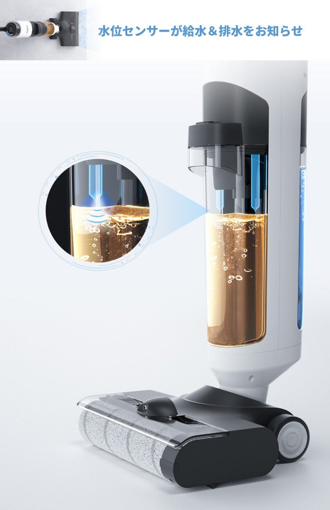 ROIDMI NEOの浄水タンクと汚水タンクには高精度な水位センサーが搭載されています。