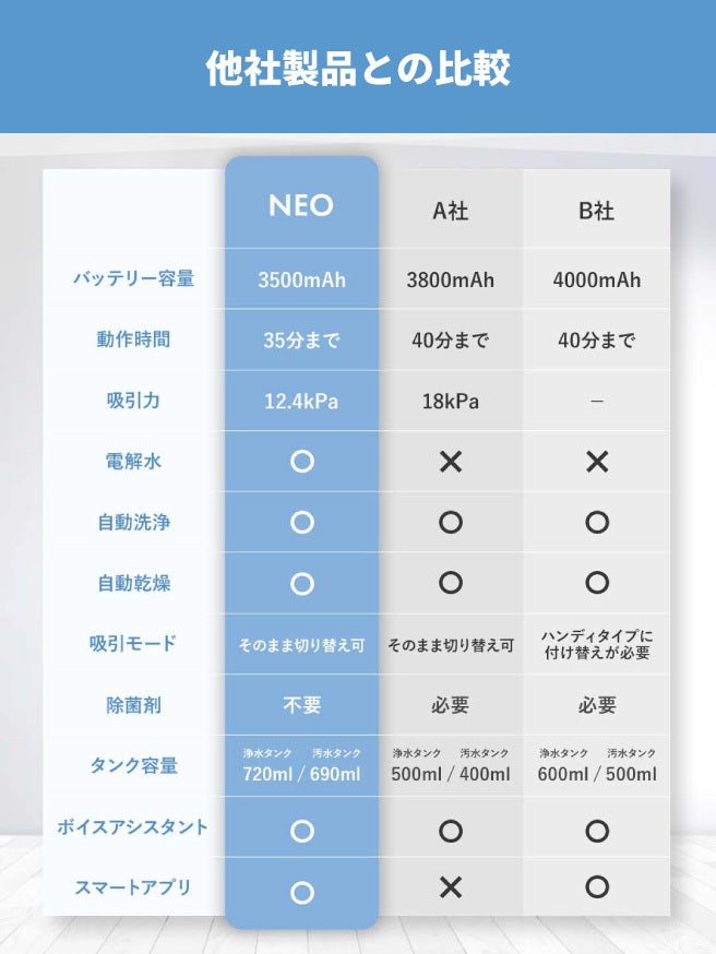私達は湿乾式コードレス掃除機NEOの生産についてメーカーと協議を行い、現在日本国内で販売するための安全性検査を行っております。